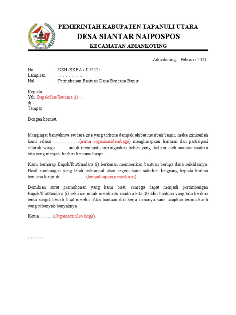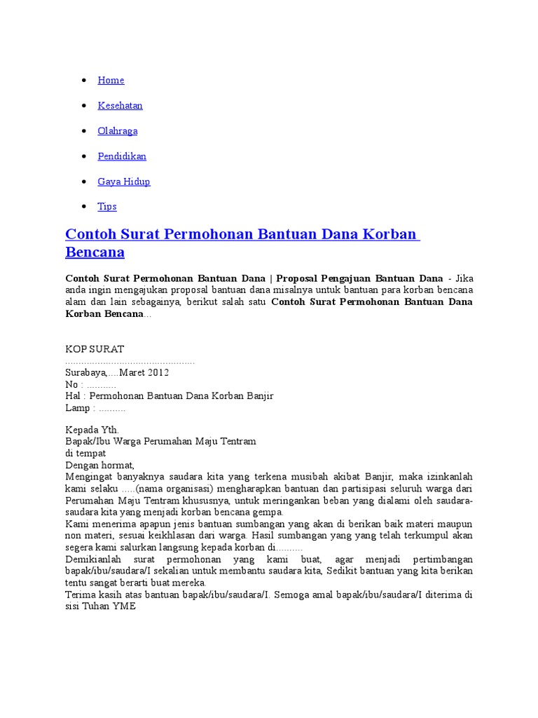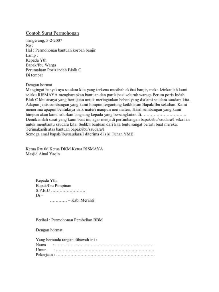 Surat Permohonan Bantuan Bencana Alam Pdf